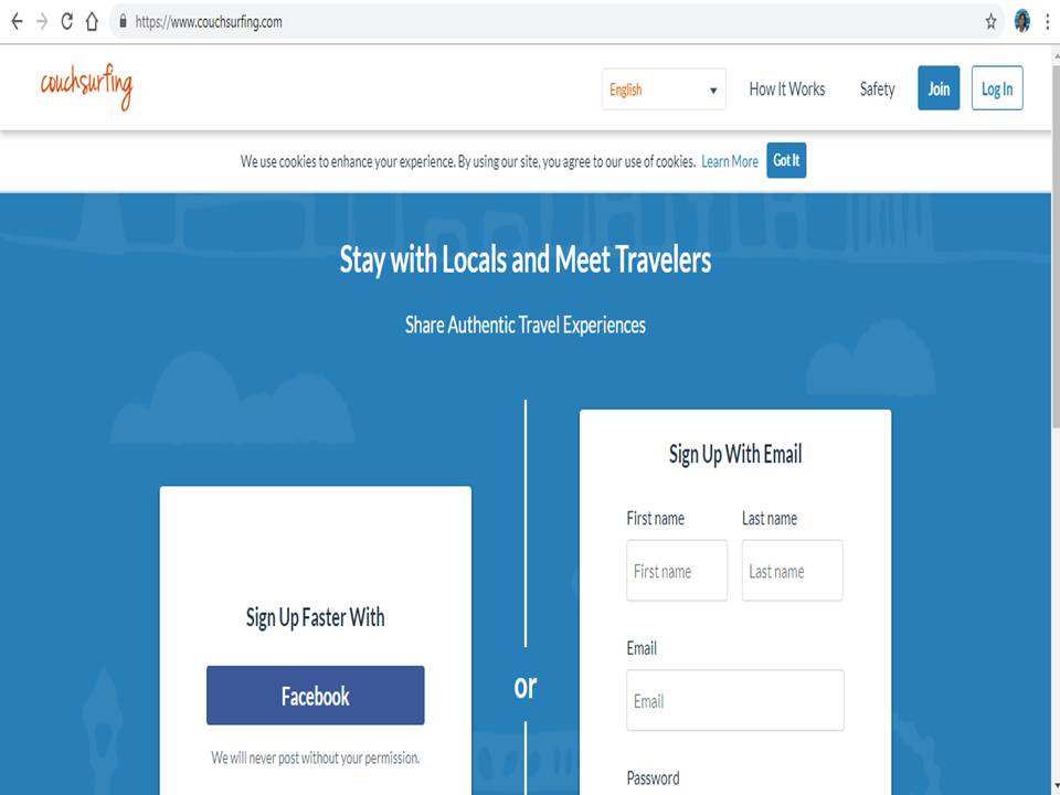 Ready to give it a try? Start by visiting the website: couchsurfing.com
